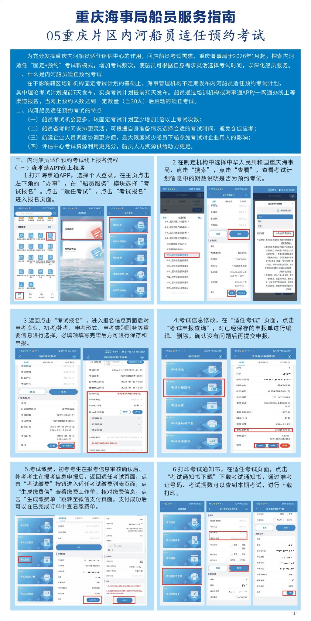 5.重庆片区内河船员适任证书预约考试
