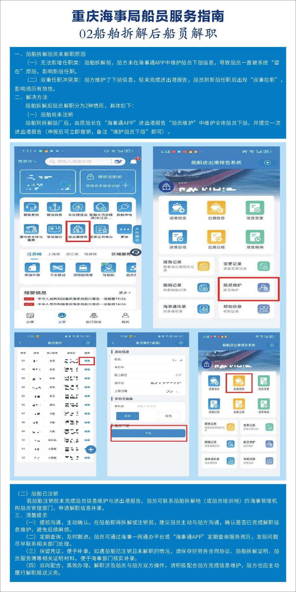 2.船舶拆解后船员解职